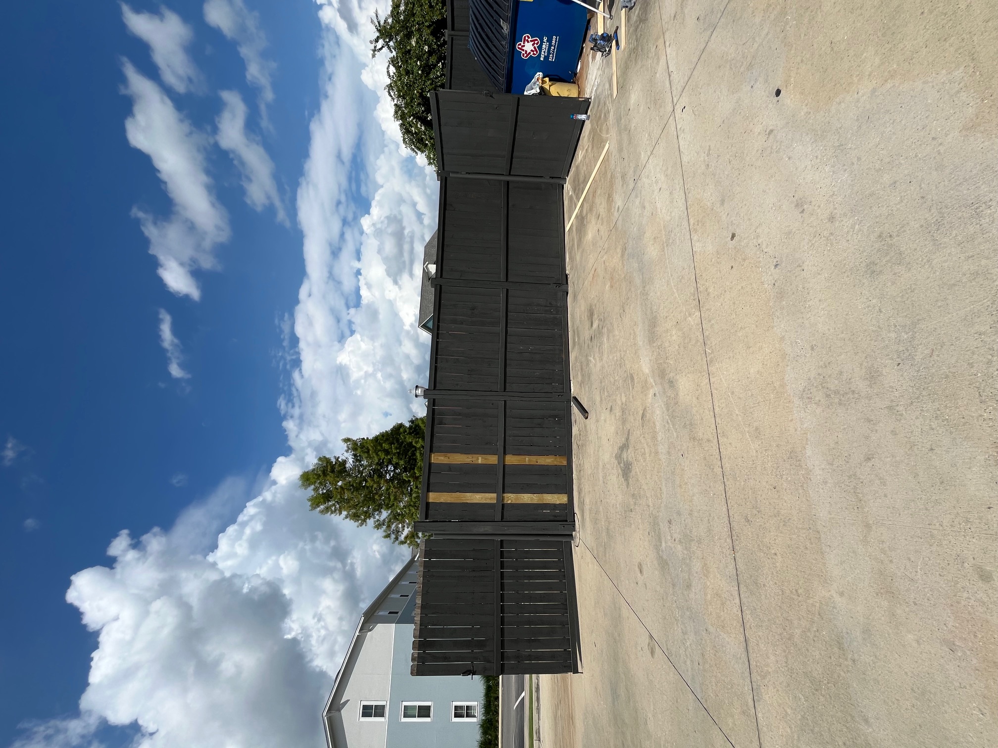 This compactor fence was looking rough! We had to pressure wash and replace some broken fence boards .Then did the exterior painting , all located in baton rouge louisiana! We cover the lower half of louisiana call or text today for your free estimate!
